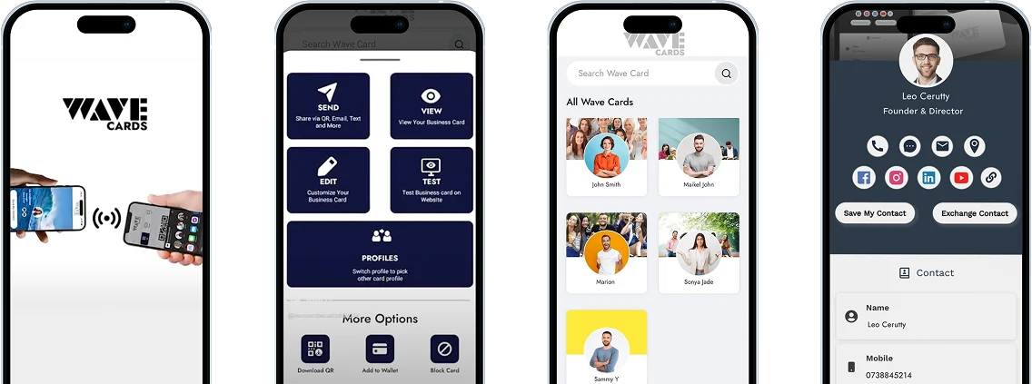 Share your contact details, a landing page, or social media accounts with a single Wave of your NFC business card.